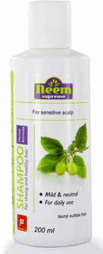 Neem Supreme Shampoo enriched with Tulsi is a product in the Supreme line which should not be missed! An active shampoo prepared on the basis of Neem (Azadirachta indica) and other plant extracts, including tulsi. Regular use improves the hygiene of the scalp and leaves hair shiny, strong and healthy. In almost all shampoos synthetic additives are used such as sodium laureth sulfate or sodium lauryl sulfate for their saponifying action. These chemical additives are long term not good for hair growth. They can dry out the hair follicle that hampers growth. Neem Supreme Shampoo contains no artificial colours, fragrances or petrochemicals. The saponifying action comes from the natural saponins such as Soap Nut and Shikakai. For best results combine with Supreme Hair Vitaliser.